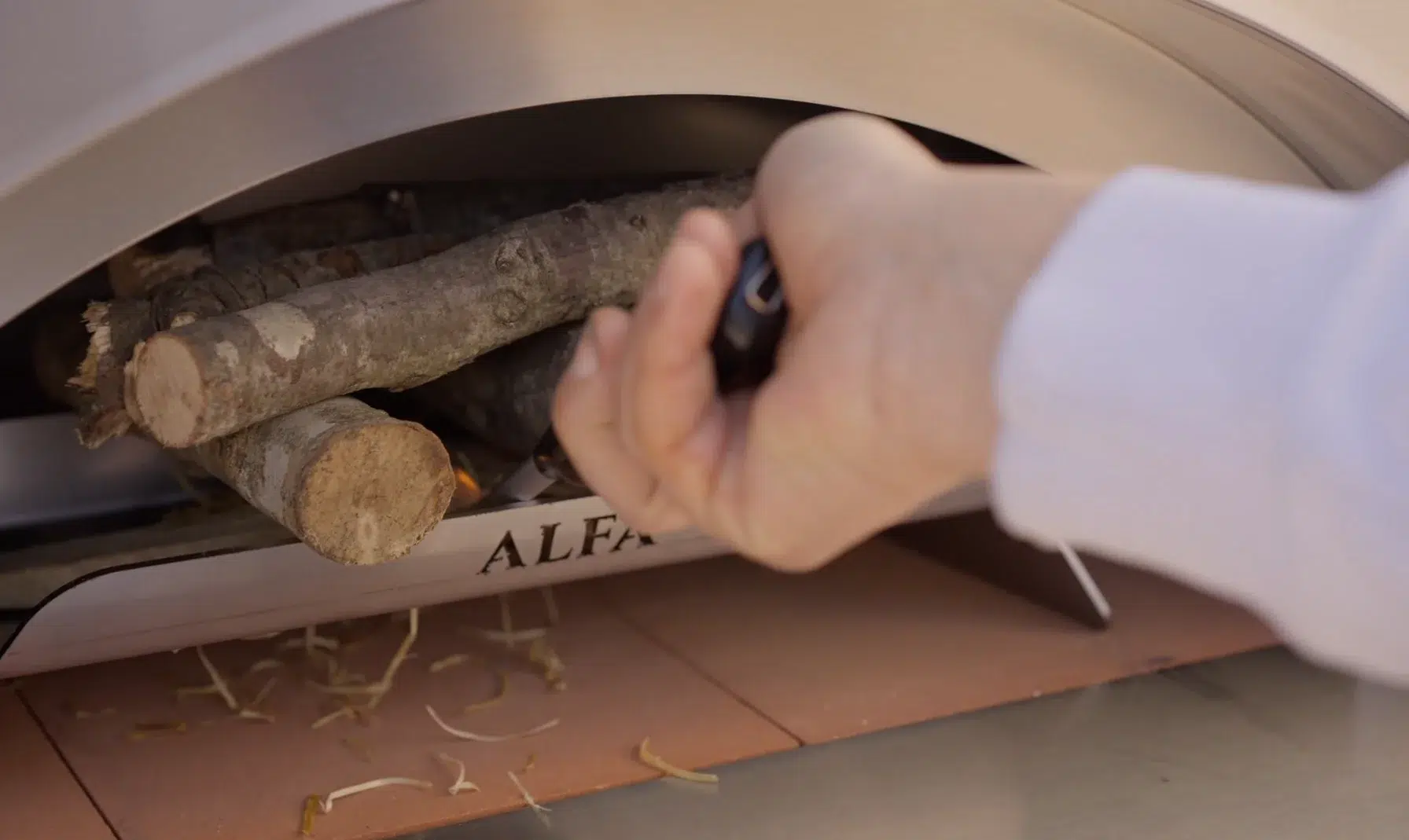 2 – Light the QwikWik firestarters to ignite your initial cross stacked wood pile in the oven