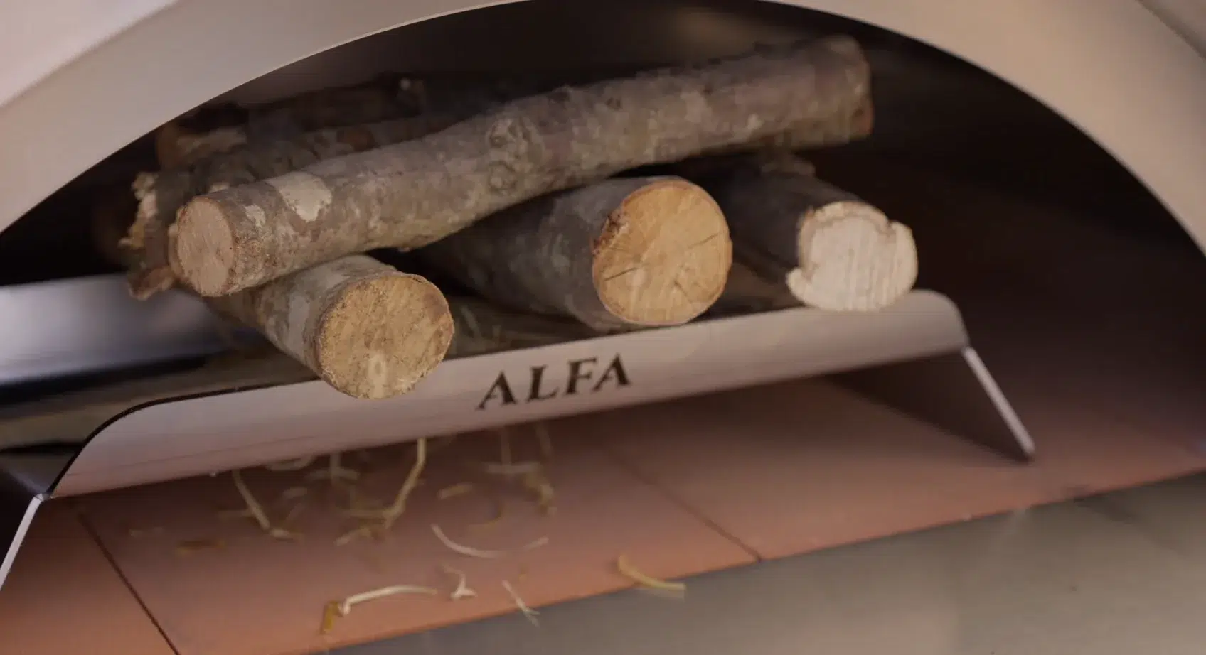 1 – In the center of the oven or slightly right of center create a cross stacked pile of ALFA Wood using smaller pieces. Include 2-3 QwikWik brand or your favorite fire-starters to help start the fire quickly.