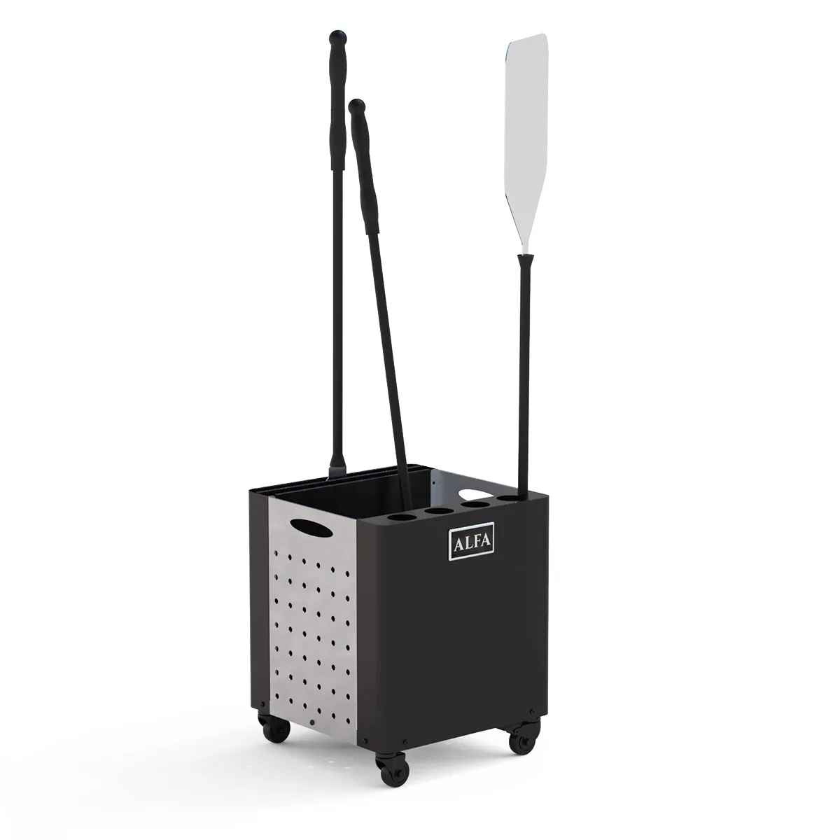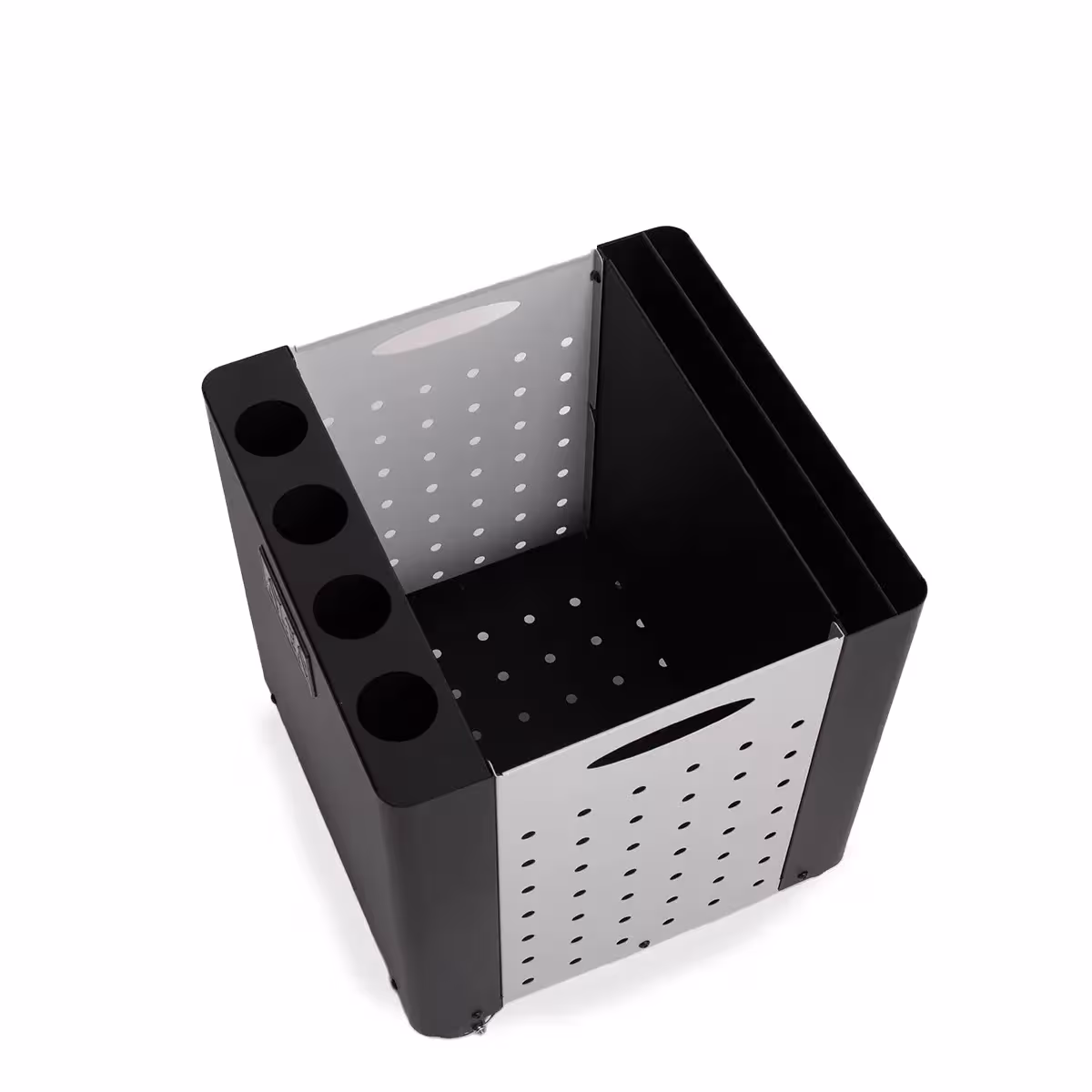 The two pockets and 4 holes provide a convenient place to store your pizza peels while the central slot is a stylish solution to contain wood or waste.