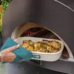 This is because heat is slowly released from the refractory stone and irradiated evenly through the oven’s curved walls.
